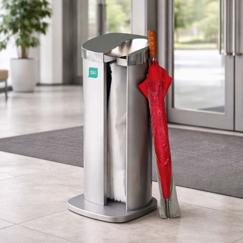 Universal para entrada dos edifícios. O seu único modelo de invólvucro serve para qualquer modelo ou tipo de guarda-chuva, seja comprido ou dobrável.